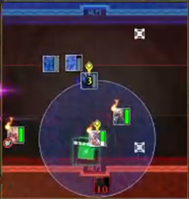 | 【陣形】(発動すると陣形が出現し、その中にいる間のみ効果が発生する。陣形は同時に複数発動できない) 自身の武力が上がり、兵力が上限を超えて回復する。さらに敵の武力を下げ、対象の敵から自身が受けた基本兵種アクションのダメージに応じて、対象の敵の兵力が減少する |
